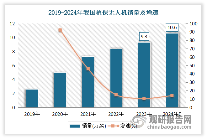 近年跟着科技的飞速成长,植保无人机正成为农业范畴的抢手话题。做为现代农业手艺的新兴代表,植保无人机凭仗其经济、环保等劣势,逐步获得了泛博农人伴侣和农业企业的承认。2023年我国植保无人机销量达9。3万架,较上年同比增加10。71%。估计2024年我国植保无人机销量达10。6万架,较上年同比增加13。98%。