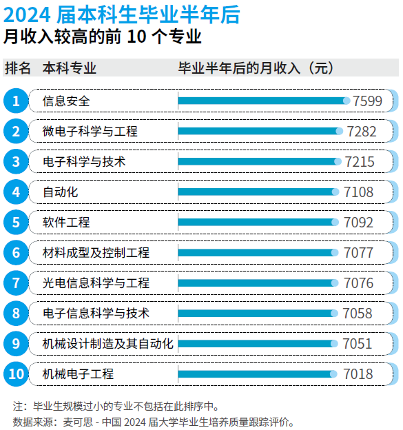 这些“绿牌”专业正在就业市场表示抢眼,不只薪资程度位居前列,更以高专业婚配度和就业对劲度著称。数据显示,2024届微电子科学取工程专业结业生平均月收入达7282元,高居本科专业收入榜第二位;电气工程及其从动化专业的就业相关度和对劲度别离达到86%和85%。 |