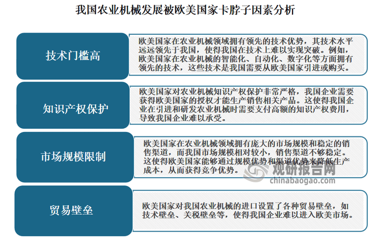 对于上述成长问题,有相关阐发:一是对于利用效率并不高问题,加速普及相关的利用学问和技术农业机械。二是对于欧美国度卡脖子问题,需要、企业和社会各方面的配合勤奋,要加强手艺研发、推进学问产权、扩大市场规模、鞭策商业便当化等方面的工做,以实现我国农业机械行业的健康、快速成长。